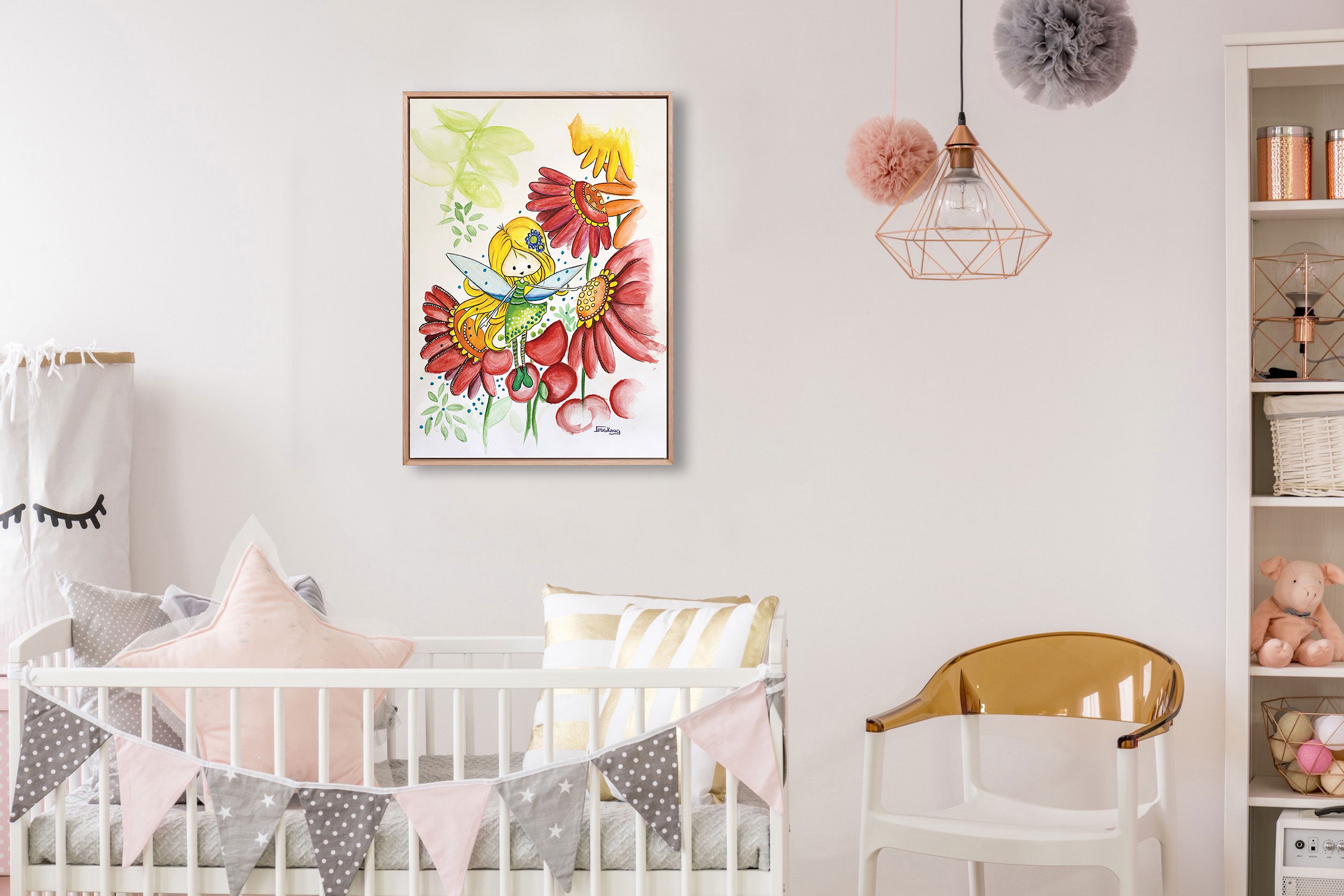 Spark your child’s imagination with this enchanting “Apple Fairy” Art Print for Kids Room. This delightful piece brings whimsical magic to any nursery or child’s bedroom, featuring a charming fairy character that will inspire dreams of magical gardens and fairy tale adventures.